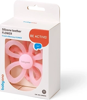 De siliconen bijtring Flower in een zachte roze kleur is ontworpen voor zo comfortabel mogelijke verlichting van gevoelig tandvlees. Zachte, veilige siliconen met gevarieerde texturen masseren het tandvlees voorzichtig en helpen het ongemak tijdens het doorkomen van tandjes te verminderen. De open bloemvorm met meerdere openingen maakt vasthouden zelfs voor de allerkleinste handjes makkelijk.