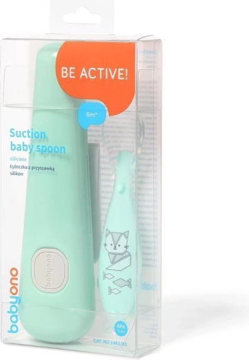 Praktische siliconen lepel met zuignap en hygiënisch reisetui, ideaal voor thuis en onderweg. Heeft een zachte en veilige siliconen tip, een stabiele zuignap tegen vervuiling en een compacte etui voor schoon en comfortabel meenemen. Geschikt voor zelfstandig eten door kinderen vanaf 6 maanden, BPA-vrij en vaatwasmachinebestendig.