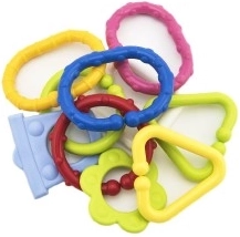 Het speelgoed is gemaakt van duurzame en lichte kunststof die prettig in kleine handjes ligt. Het ondersteunt de natuurlijke ontwikkeling van de grijpreflex, oog-handcoördinatie en het vroege begrip van vormen en kleuren. De onderdelen zijn thuis en onderweg te gebruiken – ze zijn gemakkelijk schoon te maken en gaan lang mee.