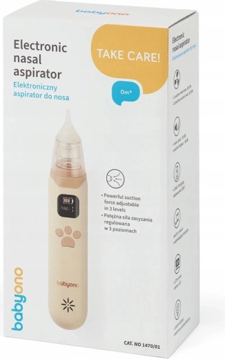 De elektronische neusslijmzuiger BABYONO maakt het neusje van je baby zachtjes en effectief vrij. Hij biedt krachtige zuigkracht tot 65 kPa, stille werking van 50 dB, een LCD-scherm en USB‑C-oplading. Dankzij de zachte siliconen opzetstukken en de rustgevende melodieën en gekleurde verlichting is het zuigen comfortabel, hygiënisch en zonder onnodige stress – thuis en onderweg.