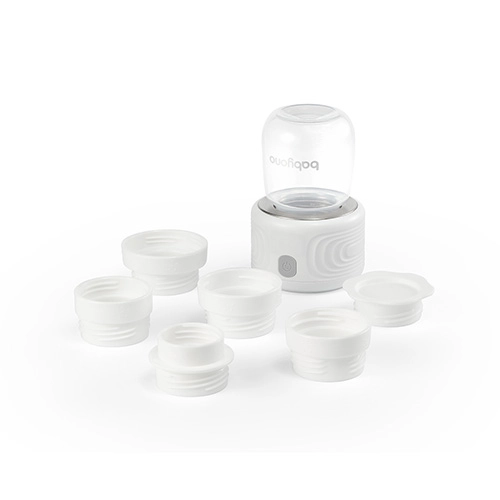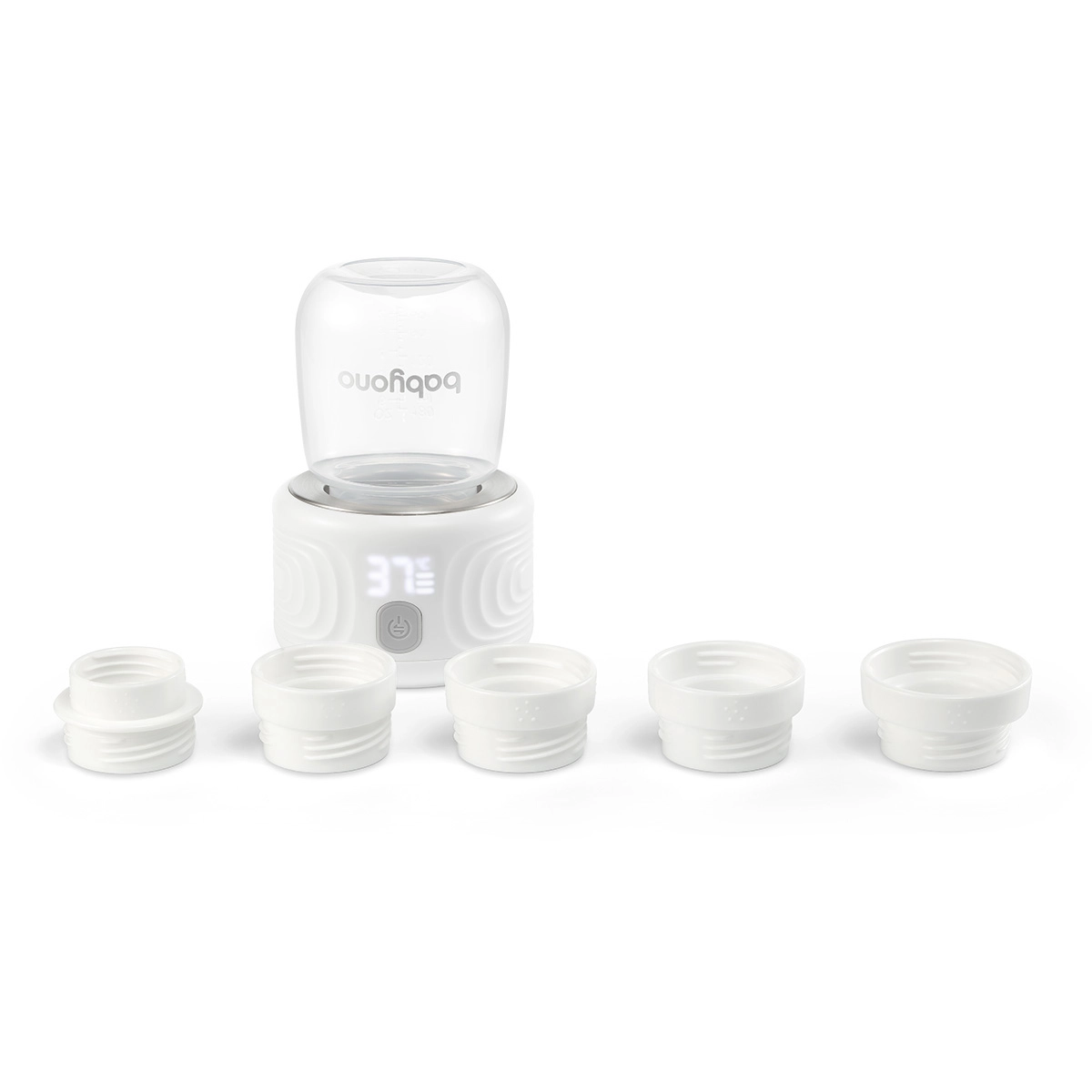 In de verpakking vind je alles wat je nodig hebt: een fles van 180 ml, vijf verwisselbare adapters voor populaire flessenmerken en een USB‑C kabel. Dankzij het lichte en compacte ontwerp past de verwarmer in je handtas, luiertas en kinderwagen, en dankzij de stille werking verstoort hij de slaap van je baby niet.