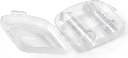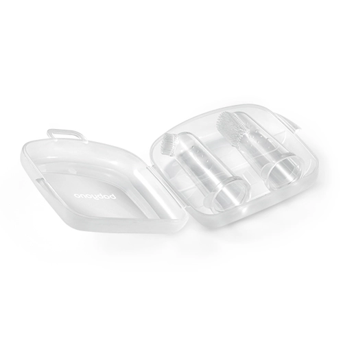 - 2× siliconen vingertandenborstel, 1× hygiënisch etui