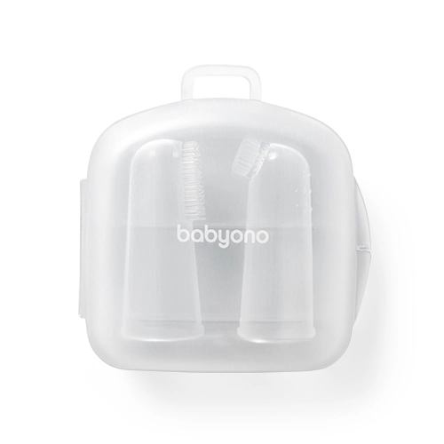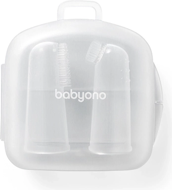 De set siliconen vingertandenborstels van BABYONO is ideaal voor de dagelijkse verzorging van de mondholte van je baby. Dankzij de zachte nopjes en flexibele haartjes verwijderen ze voorzichtig voedselresten en masseren ze tegelijkertijd het gevoelige tandvlees zonder irritatie. Het compacte etui houdt de borsteltjes schoon en klaar voor onderweg.