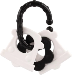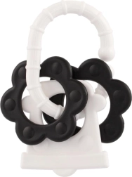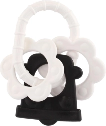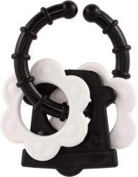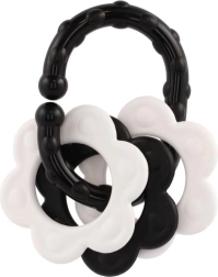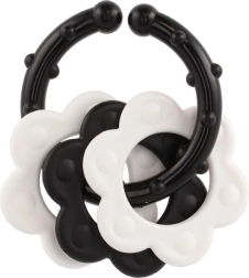 Ontdek bijtringen die speciaal zijn ontworpen voor de allerkleinsten – het contrasterende zwart-witte design trekt de aandacht van de baby en helpt het visuele waarnemen te stimuleren. Dankzij het praktische handvat liggen de bijtringen goed in kleine handjes en de rammelaar biedt zachte geluidsstimulatie.