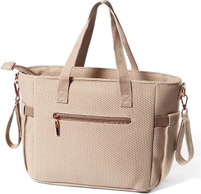 Je kunt de tas in de hand, over de schouder of crossbody dragen dankzij de lange riem. Ook eenvoudig aan de kinderwagen te bevestigen voor vrij gebruik van je handen.