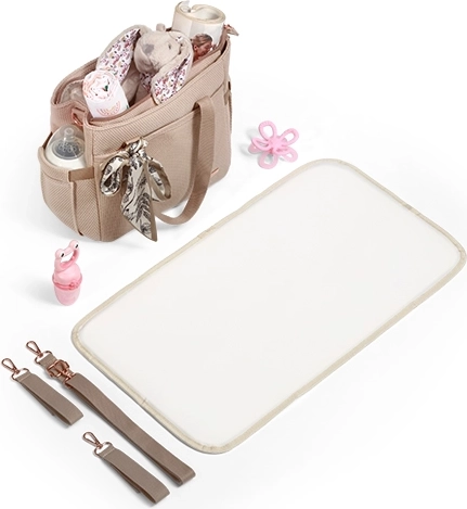 Binnenin vind je 9 praktische vakken, waaronder een thermovak voor de fles en compartimenten voor luiers, telefoon en tablet. Voor snelle organisatie is er een geïntegreerde houder voor sleutels/fopspeen en veilige ritssluiting. In de set zit ook een zachte verschoningsmat voor comfortabel verschonen onderweg.