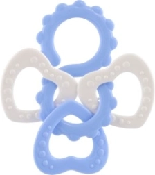 Het oppervlak van de bijtring is ontworpen met verschillende texturen die helpen het tandvlees te stimuleren en verlichting te bieden bij de pijn die gepaard gaat met het doorkomen van de tandjes.
