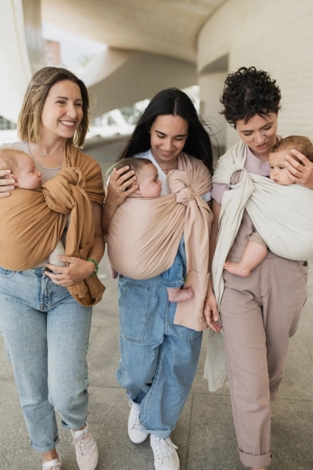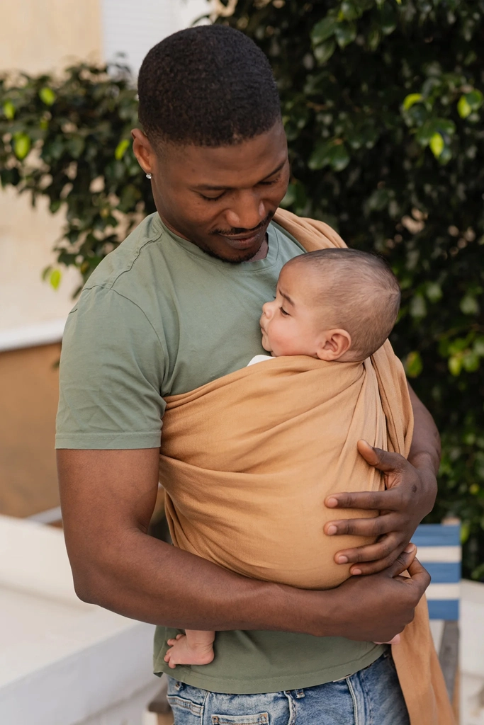 Het ademende materiaal helpt de temperatuur te reguleren, de brede strook stof verdeelt het gewicht en de metalen ringen zorgen voor nauwkeurig en veilig aanspannen. Je kind geniet in jouw armen van een 360° uitzicht en blijft tegelijk in een ergonomische houding met ondersteuning van bekkenbodem, rug en hoofd. Ideaal voor dagelijkse wandelingen, reizen en in slaap wiegen.