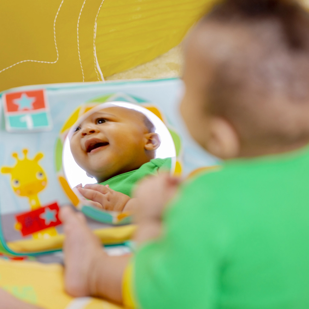 - Multizintuiglijke stimulatie via geluiden, lichtjes, texturen en het spiegeltje