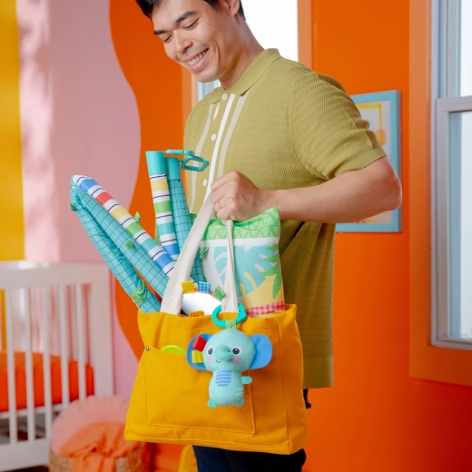 Een vrolijke jungle vol kleuren en dierenvriendjes motiveert je baby om te ontdekken, reiken en trappelen. Het compacte speelcentrum is makkelijk te dragen en op te bergen, terwijl het gewatteerde kleed comfort biedt tijdens het spelen en bij tummy time. Alle speeltjes zijn afneembaar en ook los te gebruiken – bijvoorbeeld aan de kinderwagen of autostoel.