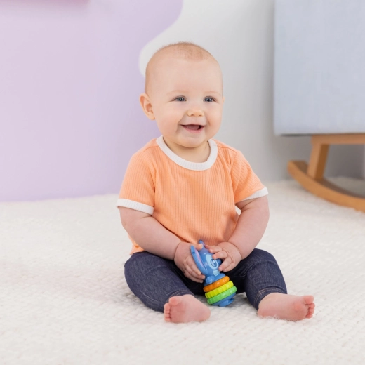 Ontdek het speelse sensorimotorische speelgoed Twist‑a‑Stitch, dat baby’s aantrekt met heldere kleuren en het schattige DISNEY STITCH-motief. Kinderen kunnen getextureerde ringen draaien met een prettig klikgeluid en het speelgoed schudden als een rammelaar. Het ondersteunt de fijne motoriek, visuele en auditieve stimulatie en is dankzij het lichte, compacte ontwerp ideaal voor onderweg.