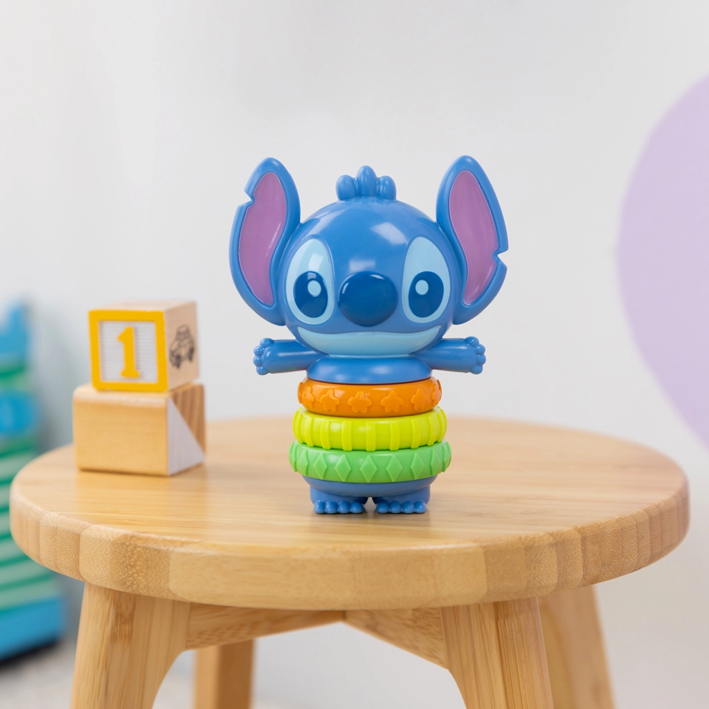Dankzij de compacte afmetingen past het in de meeste luiertassen en is het perfect voor in de kinderwagen en het autostoeltje. Het schattige Stitch‑design valt direct op en maakt van het speelgoed een geweldig cadeau‑idee voor een geboorte, Kerstmis of een verjaardag.