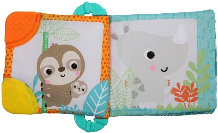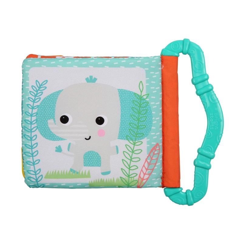 Het zachte activiteitsboekje van BRIGHT STARTS combineert plezier met praktische verlichting bij doorkomende tandjes. Kleurrijke dierillustraties en ritselende en krakende pagina’s stimuleren zicht en gehoor, terwijl lusjes met twee texturen het tandvlees zacht masseren. Dankzij het lichte ontwerp en de gripvriendelijke elementen kan je baby het boekje eenvoudig vasthouden en ontdekken.