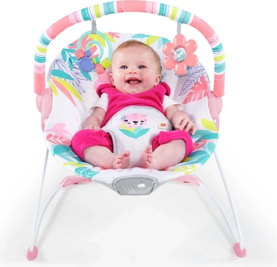 De vrolijke roze wipstoel BRIGHT STARTS Flamingo Vibes biedt je baby rust en plezier in één. Hij beschikt over kalmerende vibraties, een diepe, zachte zitting met ondersteuning, een afneembare speelboog met 2 speeltjes en veilige bevestiging dankzij de 3-puntsgordel en antislipvoetjes. De hoes is eenvoudig te onderhouden – machinewasbaar.