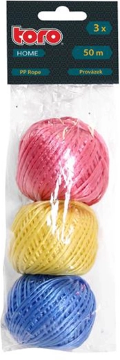 Universeel bindtouw voor dagelijks gebruik in huis en op kantoor. De set bevat 3 stuks in een kleurenmix (roze, wit, blauw), elk met een lengte van 50 m en een breedte van 1 mm – ideaal voor verpakken, bundelen en organiseren.