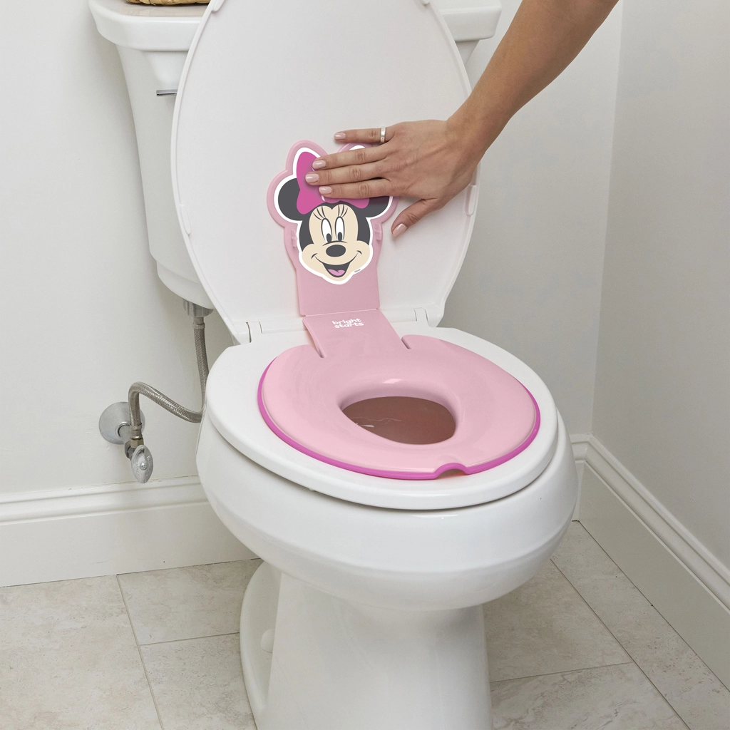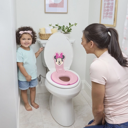 Het plakbare WC-verkleinzitje Bright Starts Flip & Sit met de geliefde MINNIE MOUSE helpt kinderen veilig en comfortabel over te stappen naar het gebruik van het volwassenentoilet. De montage is razendsnel – twee sterke kleefstrips bevestigen het zitje direct op de bestaande bril, zonder boren en zonder gereedschap. Wanneer het niet nodig is, klap je het simpelweg omhoog zodat het geen ruimte inneemt.