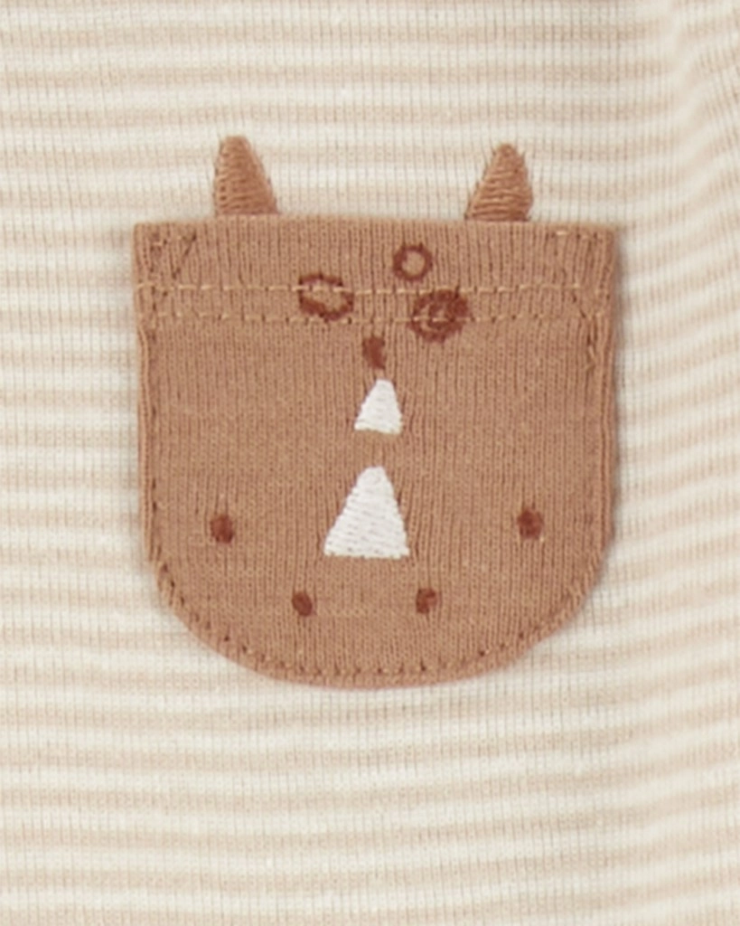 De praktische envelophals en nikkelvrije drukknoopjes tussen de beentjes versnellen het aan- en uitkleden en verschonen. De set wordt geleverd op een hanger, dus klaar voor direct gebruik of als cadeautip voor kersverse ouders.