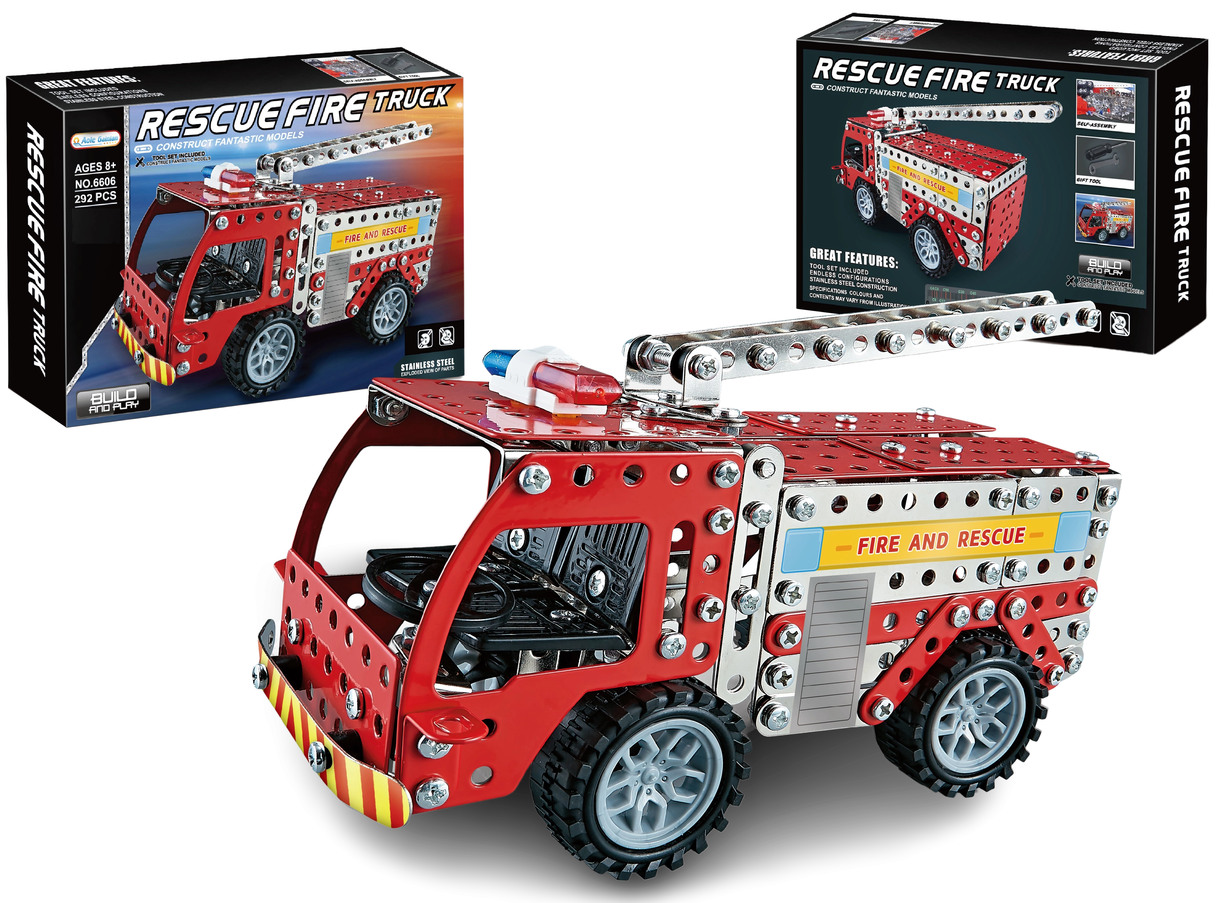 Ontdek een leuke en leerzame speelgoedset – een metalen bouwset van een brandweerauto met 292 onderdelen. Kinderen oefenen hun fijne motoriek, logisch denken en basis van technisch inzicht dankzij schroefjes en moertjes. Duurzame materialen in een combinatie van metaal en kunststof zorgen voor een lange levensduur en uren creatief speelplezier.