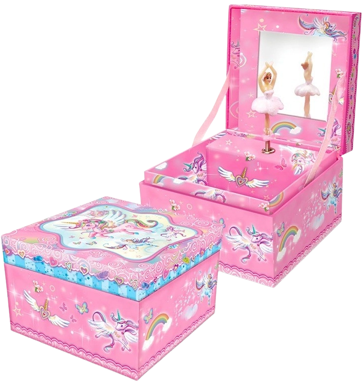Een betoverende sieradendoos met een eenhoorn- en ballerina-motief die elke kleine prinses zal verrukken. Bij het openen klinkt er een prettige melodie en binnenin is er ruimte voor sieraden en kleine schatten. Dankzij de compacte afmetingen is eenvoudige plaatsing in de kinderkamer mogelijk en de hoogwaardige afwerking garandeert langdurig plezier in gebruik.