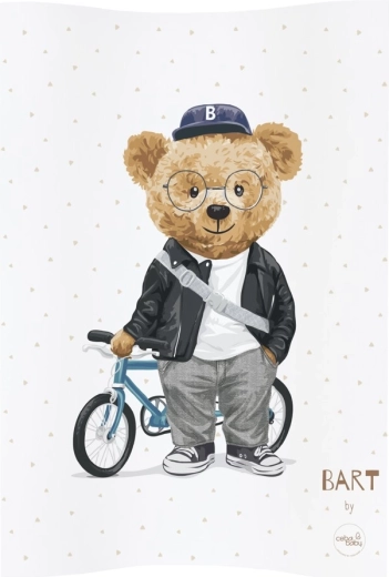 Een zachte en veilige tweezijdige verschoonmat van 48 × 70 cm biedt comfort bij de dagelijkse verzorging van je baby. Dankzij de geprofileerde, verhoogde randen, de gecertificeerde PVC-folie en het gemakkelijk afwasbare oppervlak is hij ideaal voor op een commode of een ander stabiel oppervlak. Het schattige Fluffy Puffy beren-motief maakt elke babykamer extra gezellig.