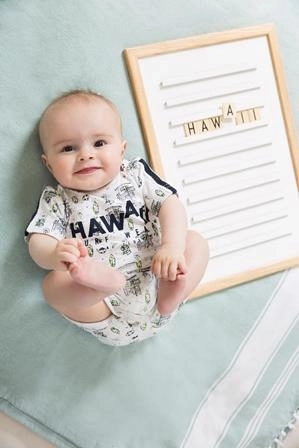 De praktische drukknopen in het kruis vergemakkelijken het verschonen, terwijl de ronde hals en korte pijpjes de hele dag voor comfort zorgen. De speelse zomerprints en de HAWAII-opdruk geven de outfit een vrolijke uitstraling – perfect voor elke dag.