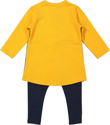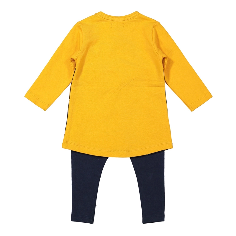 Kleed je kleine dame in een comfortabele en kwalitatieve set die zijn vorm uitstekend behoudt en zacht is voor de kinderhuid. De set bevat een gele jurk en een elastische legging die perfect bij elkaar passen en het dagelijks aankleden gemakkelijker maken.