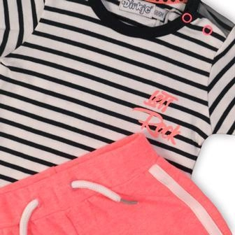 Dirkje tweedelige peuterset – gestreept T-shirt en roze short
