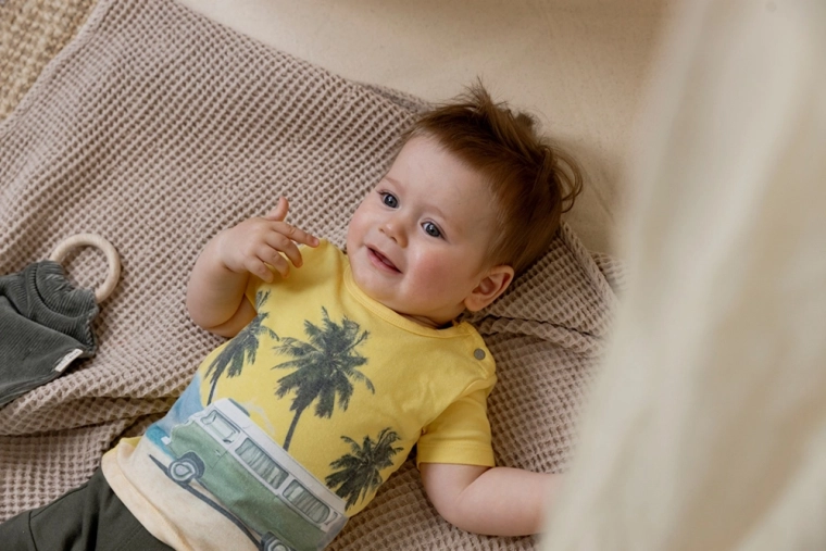 Geniet elke dag van de zomer met dit lichte en comfortabele T-shirt voor kleine avonturiers. De gele tint en het speelse strandmotief geven de outfit een frisse look, terwijl de zachte tricot met een vleugje elastaan bewegingsvrijheid en comfort de hele dag garandeert.