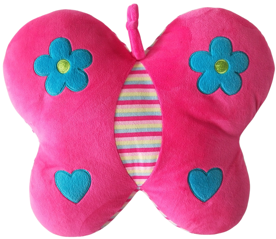 Dit schattige vlinderkussen betovert kinderen met zijn lieve design en extra zachte oppervlak. Dankzij het hoogwaardige pluche is het ideaal om mee te knuffelen, te relaxen en om comfortabel bij in slaap te vallen. De zachte kleuren passen gemakkelijk bij de inrichting van de kinderkamer en zorgen voor een knusse sfeer.