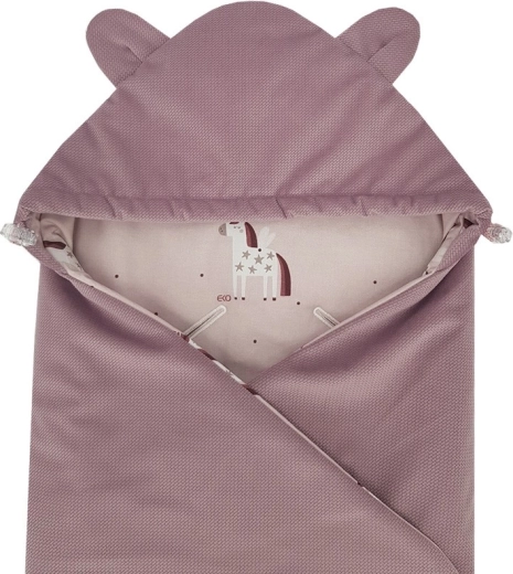 De praktische capuchon met oortjes en de speelse print geven de slaapzak een eigen stijl. Ideaal voor in de autostoel, de kinderwagen en als warme wikkeldeken thuis.