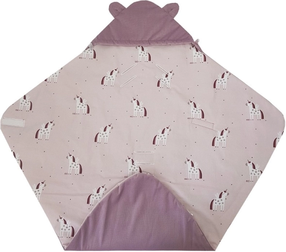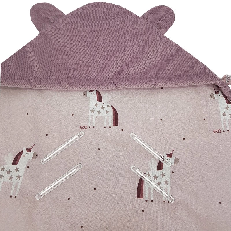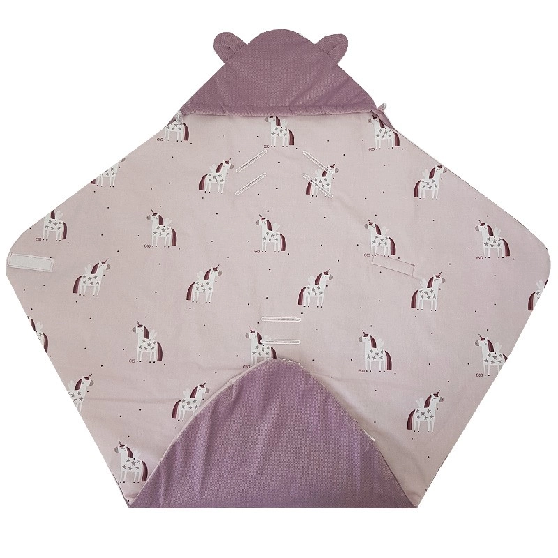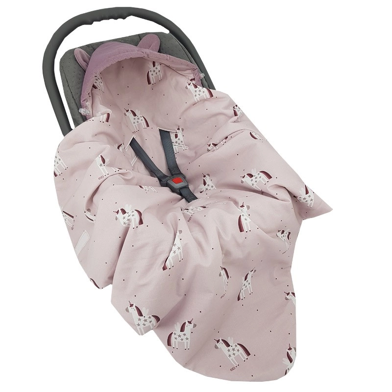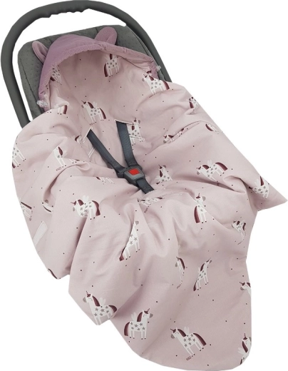 Praktische wikkelslaapzak voor de autostoel voor baby’s van 3–18 maanden in een zacht roze design met Unicorn-motief. Combineert een zachte VELVET/MINKY buitenkant, een aangename katoenen voering en een ademende hypoallergene vulling. Dankzij de openingen voor veiligheidsgordels bevestig je de slaapzak eenvoudig zonder de gordels los te maken en wikkel je je baby in warmte en comfort. Warmtestandaard 2,5 TOG voor het hele jaar door gebruik.