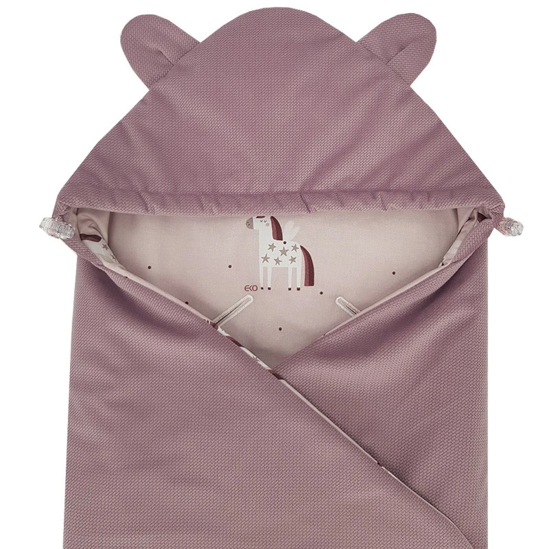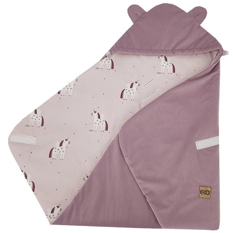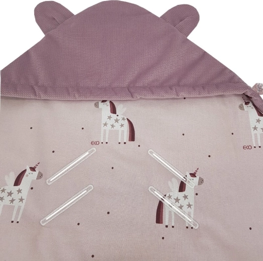 De EKO Velvet Unicorn wikkelslaapzak is ontworpen voor veilig en comfortabel reizen in de autostoel en voor rustige wandelingen in het babystoeltje of de kinderwagen. De zachte VELVET/MINKY buitenkant, katoenen voering met schattige print en hypoallergene vulling zorgen voor een knusse omhelzing die je baby warm en comfortabel houdt.