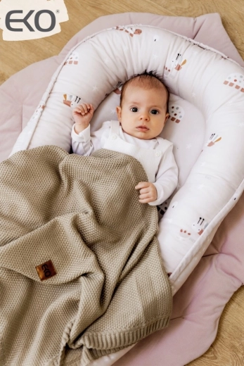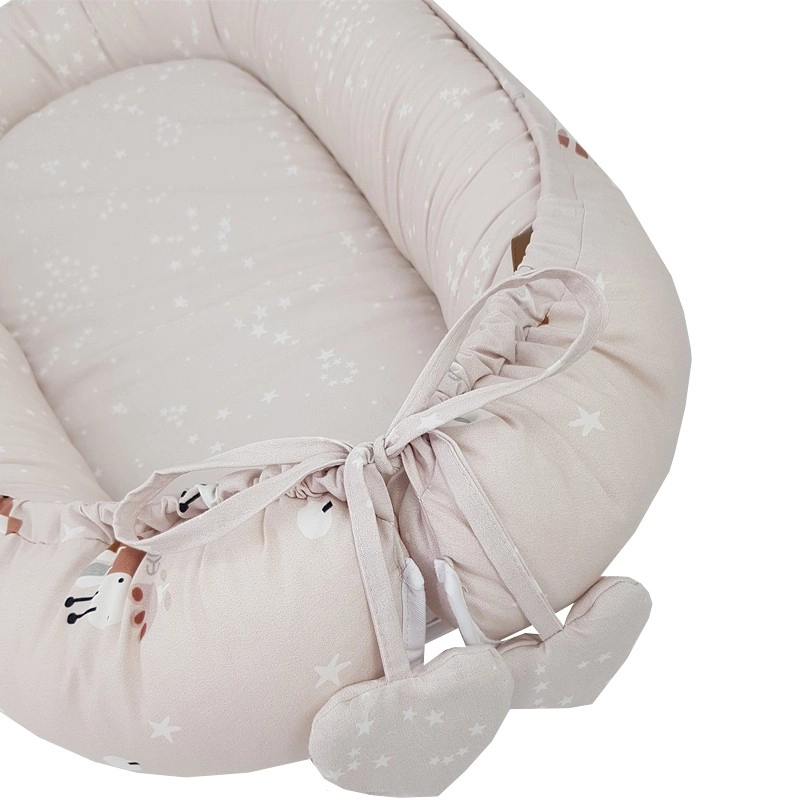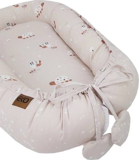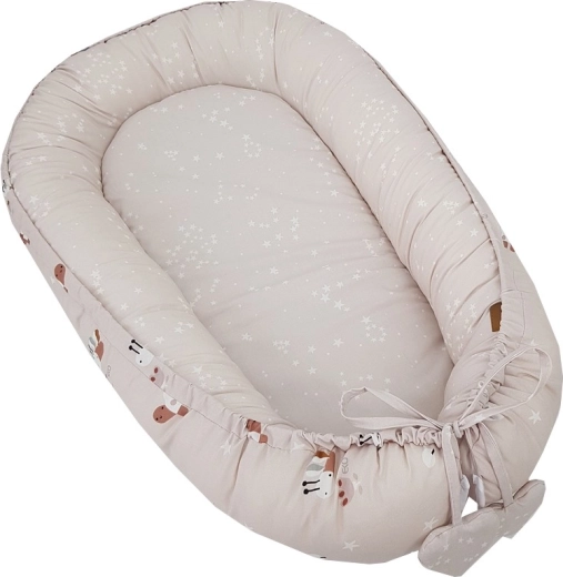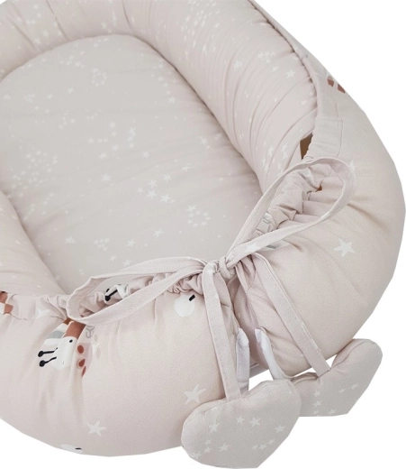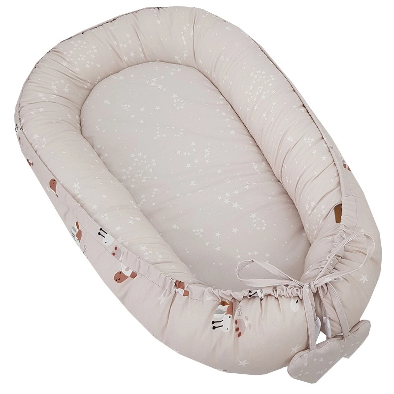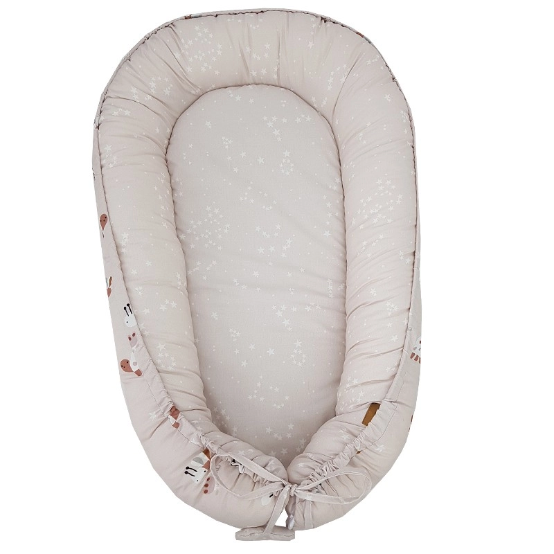 Het nestje is ideaal voor in het ledikant, op de bank of op de vloer als een draagbare rustzone en kan ook dienen als een zachte speelmat. Eenvoudig in onderhoud en hoogwaardige afwerking voor een lange levensduur. Let op: het nestje is niet bedoeld om een kind in te dragen.
