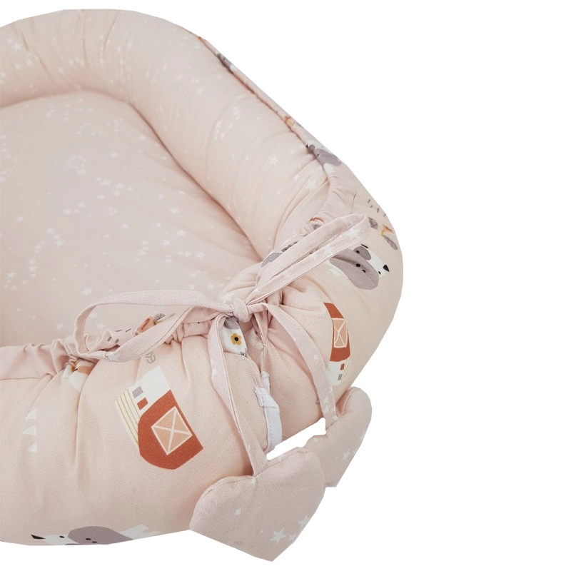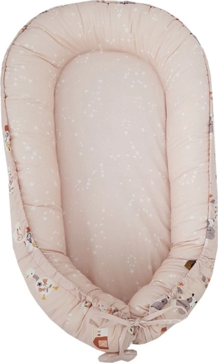 Verander eenvoudig de look van het nest dankzij twee zijden – een schattig boerderijmotief en subtiele sterretjes in de tint Powder Pink.