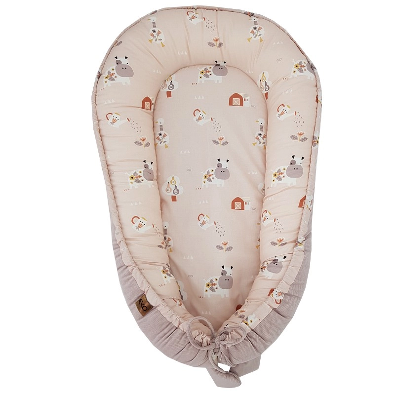 Geef je baby een knus plekje thuis en onderweg. Het EKO Velvet My Farm babynestje in poederroze combineert een zachte VELVET-bovenzijde met ademende katoen. De hoge, zacht gewatteerde randen creëren een veilige ruimte die je baby helpt zich rustig en comfortabel te voelen.