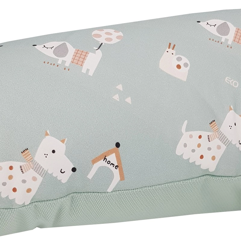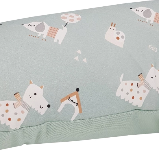 Het EKO zwangerschaps- en voedingskussen Dogs Mint 180 cm is ontworpen voor maximaal comfort tijdens zwangerschap, voeden en rust. De U‑vorm vergemakkelijkt een correcte lichaamshouding, ontlast rug en schouders en helpt spanning in de wervelkolom te voorkomen. De superzachte vulling past zich aan de lichaamsvormen aan, terwijl de aangename textiele hoes comfort biedt, ook bij langer gebruik.
