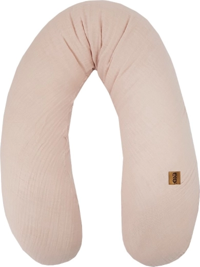 Het EKO voedingskussen van mousseline met een lengte van 180 cm is de ideale hulp voor comfortabel voeden. De fijne 100% katoen is zacht aanvoelend, ademend en van nature elastisch, waardoor het zich gemakkelijk aanpast aan het lichaam van zowel moeder als baby. Dankzij de ergonomische vorm helpt het de juiste houding te behouden en verlicht het spanning in schouders en wervelkolom.
