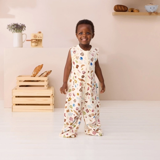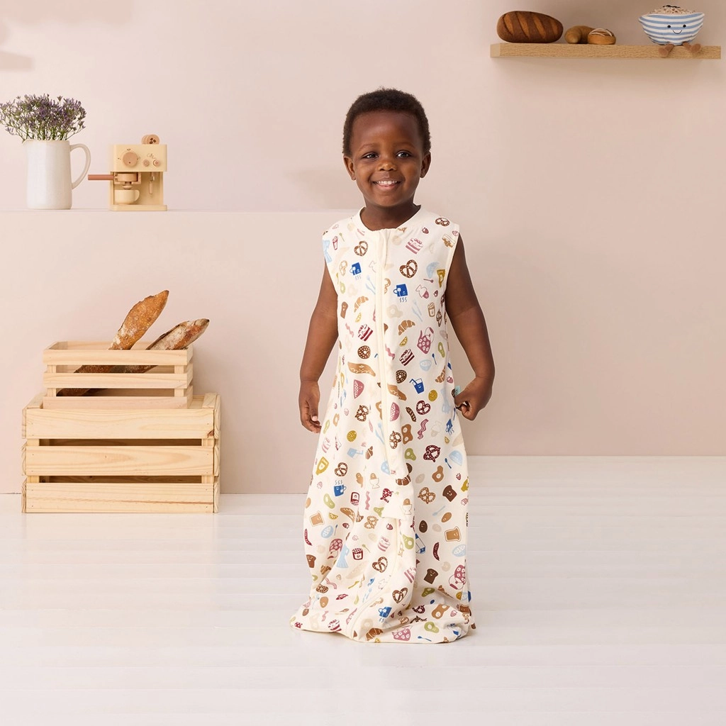 De ErgoPouch Sleep Suit Bag 2-in-1 combineert de veiligheid van een slaapzak met de bewegingsvrijheid van een onesie. De buitentijk van GOTS-biologische katoen (400 TC) doet denken aan hoogwaardig beddengoed – glad, comfortabel en uitstekend voor temperatuurregulatie. Dankzij elastische zij- en schouderpanelen kan je kind vrij bewegen zonder verstrikking, terwijl de klokvormige onderkant gezonde heupen ondersteunt. Het Bon Appetit-design fleurt de kinderkamer op met een speelse print.
