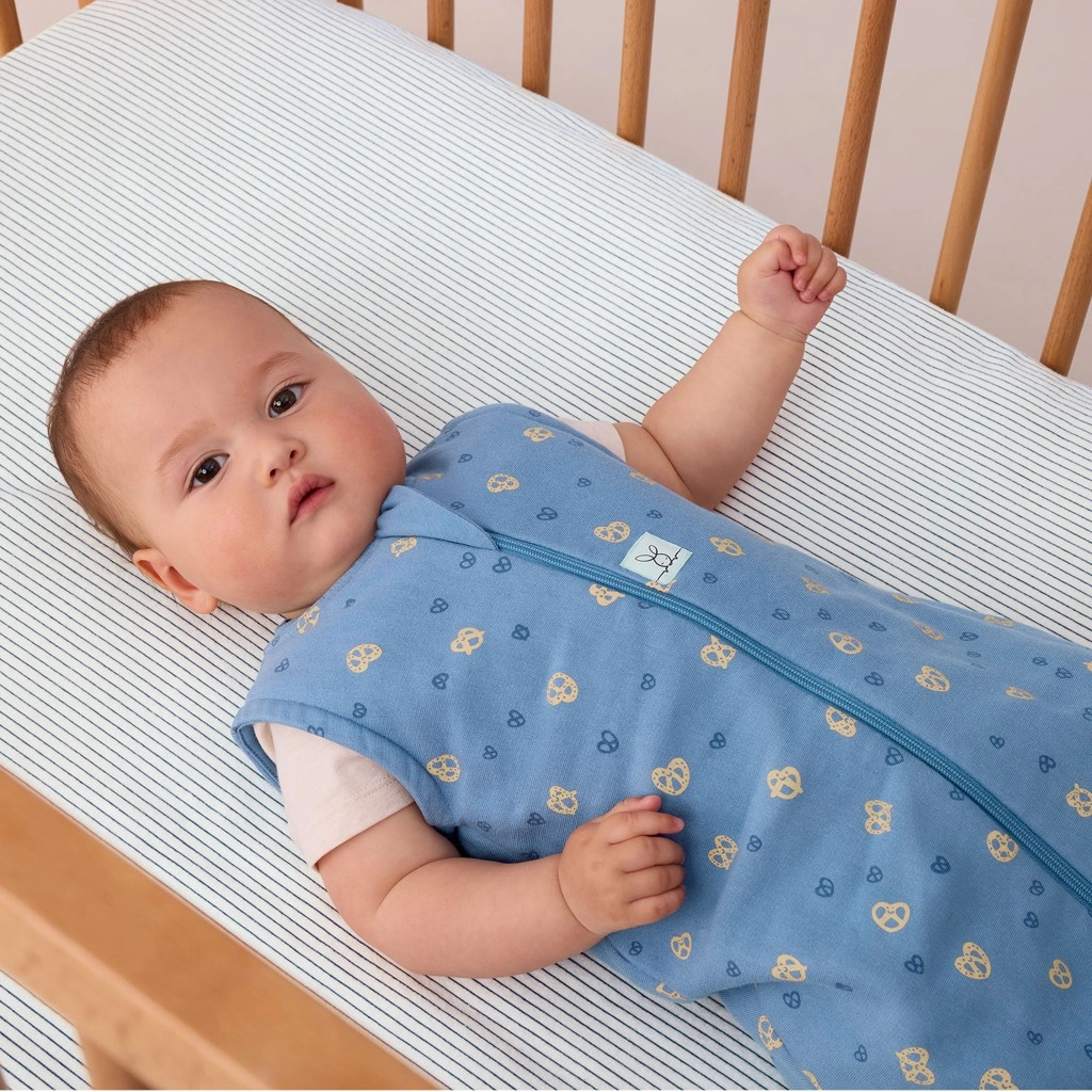 De ergonomisch gevormde ErgoPouch Jersey slaapzak is ontworpen als “de eerste zak na de inbakerperiode”. De zachte en elastische biologische katoen is vriendelijk voor de gevoelige huid, ademend en helpt de temperatuur te reguleren zonder risico op oververhitting. 0,2 TOG biedt lichte warmte in warme kamers, waardoor extra losse dekens in het bedje niet nodig zijn.