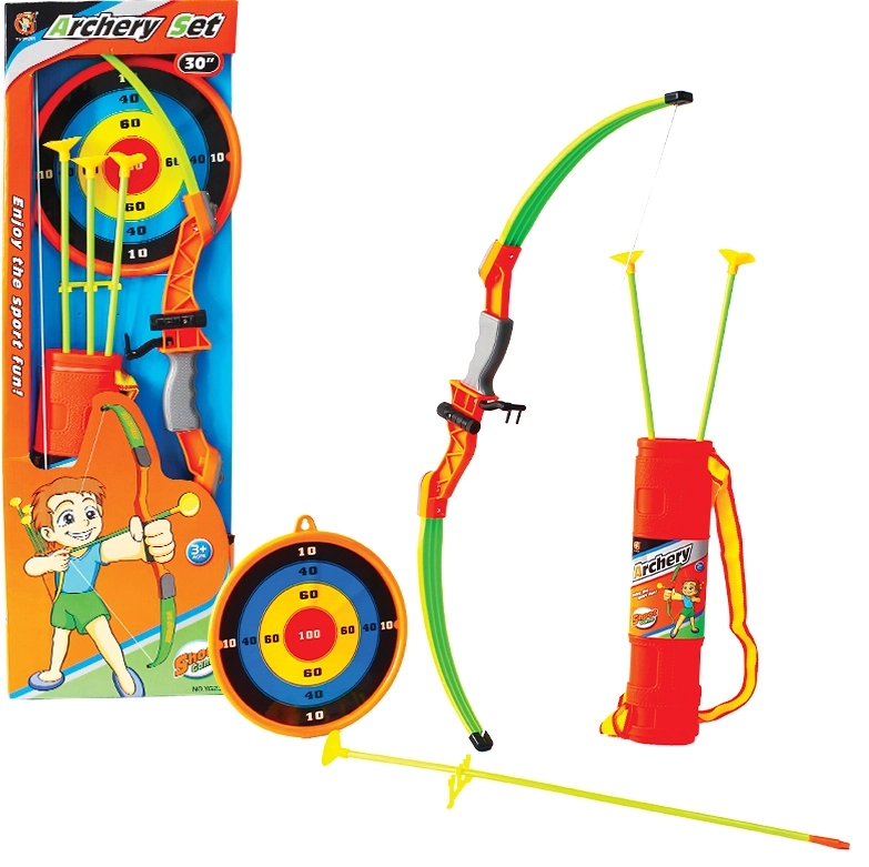 - Complete set: boog 76 cm, 3 pijlen met zuignappen, doel