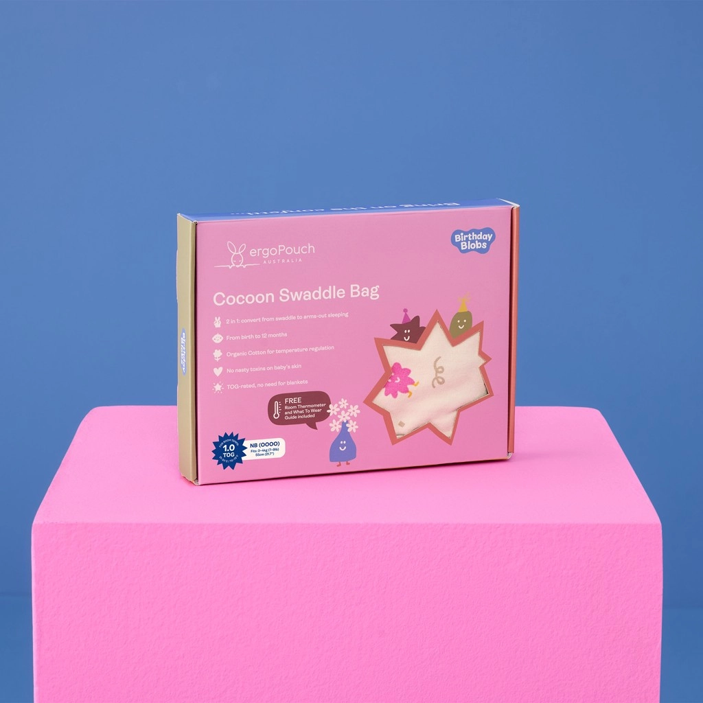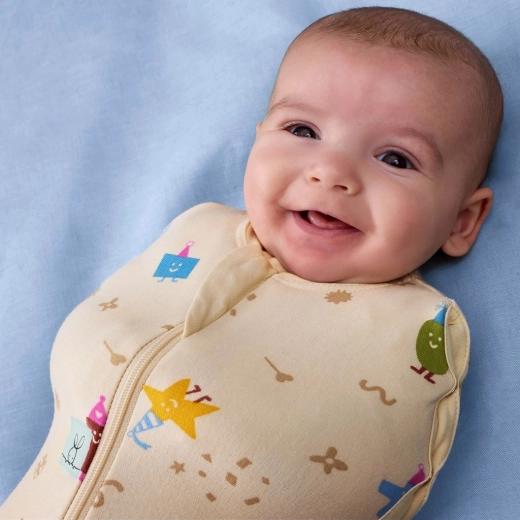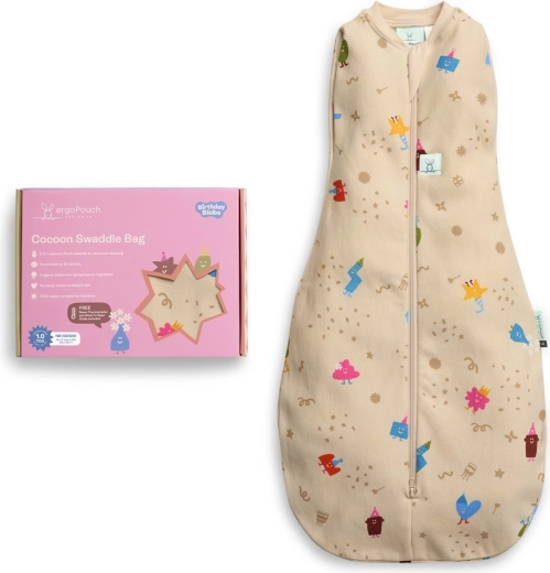 De Birthday Blobs-collectie brengt een speelse print met vrolijke figuurtjes die ieder dutje opvrolijken. Het Cocoon-model is ontworpen om inbakeren eenvoudig te vervangen en je baby tegelijk veilig en comfortabel te houden. De 1 TOG-waarde is ideaal voor kamertemperaturen van 21–24 °C zonder extra dekens.