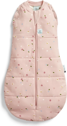 De 2-in-1 inbakerdoek en slaapzak ErgoPouch Cocoon Daisies maakt in slaap vallen eenvoudiger zonder ingewikkeld inbakeren met doeken. De waarde van 2,5 TOG is ideaal voor kamertemperaturen van circa 17–23 °C zonder extra dekens, terwijl het borstgedeelte met ca. 1,0 TOG oververhitting helpt voorkomen en vrij ademen bevordert. Dankzij de tweerichtingsrits verschoon je snel en geruisloos.