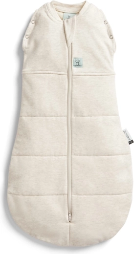 Praktische 2-in-1 ERGOPOUCH Cocoon inbakerdoek en slaapzak voor baby’s van 6–12 maanden (8–10 kg) met een warmteclassificatie van 2,5 TOG zorgt voor een veilige en comfortabele slaap zonder deken bij een kamertemperatuur van 17–23 °C. Gemaakt van GOTS-gecertificeerd biologisch katoen met bamboe-mix, is hij ademend en zacht en ook geschikt voor de gevoelige huid. Dankzij de tweerichtingsrits is verschonen eenvoudig en met behulp van de drukknoopjes op de schouders verander je hem snel in een slaapzak voor de fase waarin je kind begint te rollen.