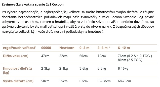 De 2-in-1 inbaker- en slaapzak ergoPouch Cocoon helpt baby’s rustiger te slapen zonder losse dekens. De lichte warmteklasse 1 TOG is ideaal voor kamertemperaturen van 21–24 °C. Het borstgedeelte is ontworpen voor veilig ademhalen en om oververhitting te voorkomen, terwijl de rekbare stof natuurlijke beweging en een comfortabele positie van de handjes mogelijk maakt.