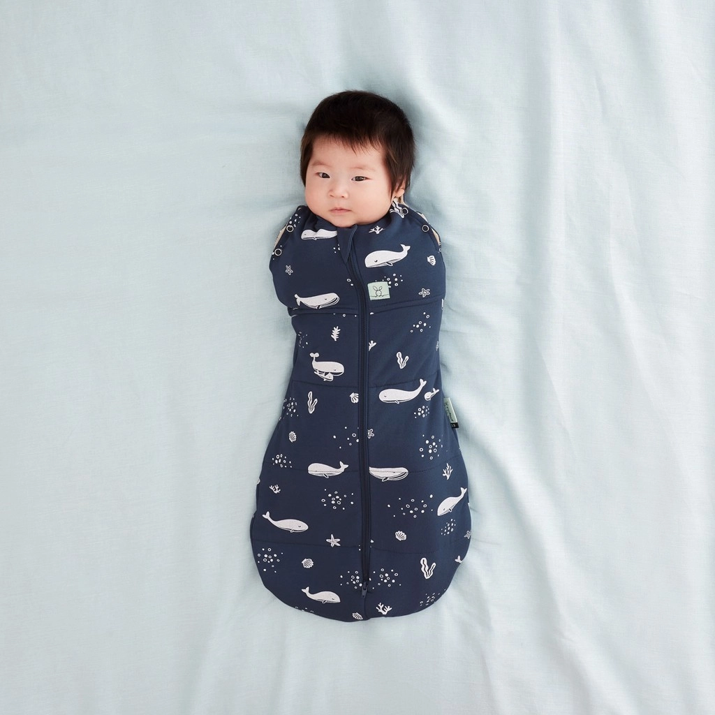 Geef je baby een rustgevende slaap met de 2-in-1 ERGOPOUCH Cocoon inbakerdoek en slaapzak in het Whale-patroon. Combineert veilig inbakeren, gemakkelijk aantrekken met rits en ideale warmte 2,5 TOG voor kamertemperaturen van 17–23 °C. Gemaakt van organisch katoen met GOTS-certificaat en bamboe, is het ademend, zacht voor de gevoelige huid en dankzij de klokvorm gezonde keuze voor heupen. De tweewegsrits maakt snel verschonen ook ‘s nachts eenvoudig.