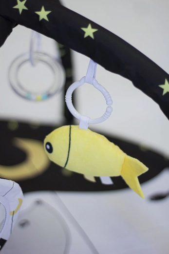 Universeel 3-in-1 speelkleed voor baby’s van geboorte tot 3 jaar met een groot speeloppervlak, 2 afneembare speelbogen en 4 hangende speeltjes aan C-ringen. Je verandert het eenvoudig van een klassiek kleed in een tipi-tent voor langdurig speelplezier en zintuiglijke stimulatie. Zachte mat, zwart-wit design voor onrijpe oogjes en ondersteuning voor spel op de rug, op de buik en zittend.