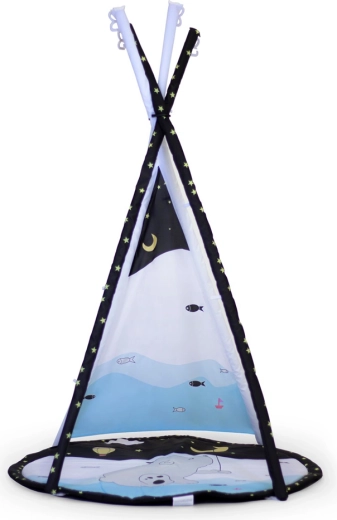 - 3 speelmodi: kleed met speelboog, overkapping met dakje, tipi-tent