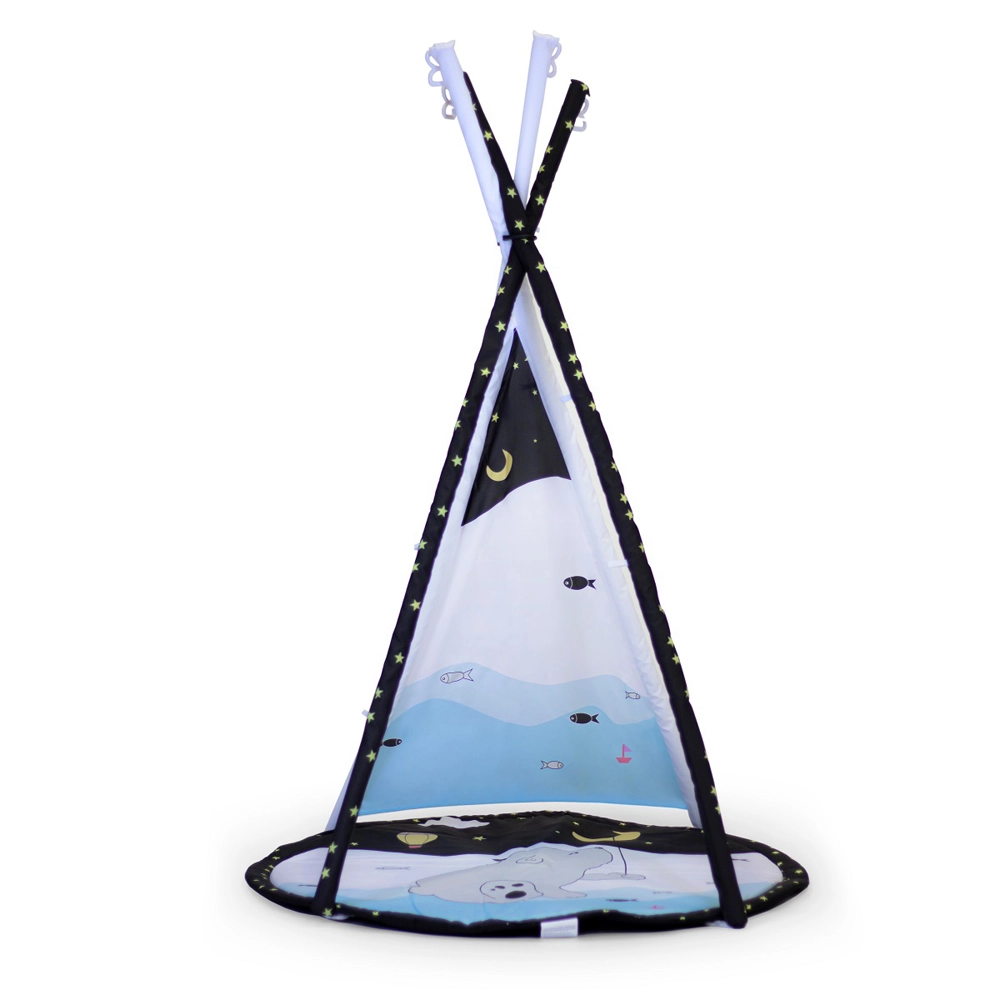 - 3-in-1: speelkleed met speelboog, kleed met overkapping, tipi-tent
