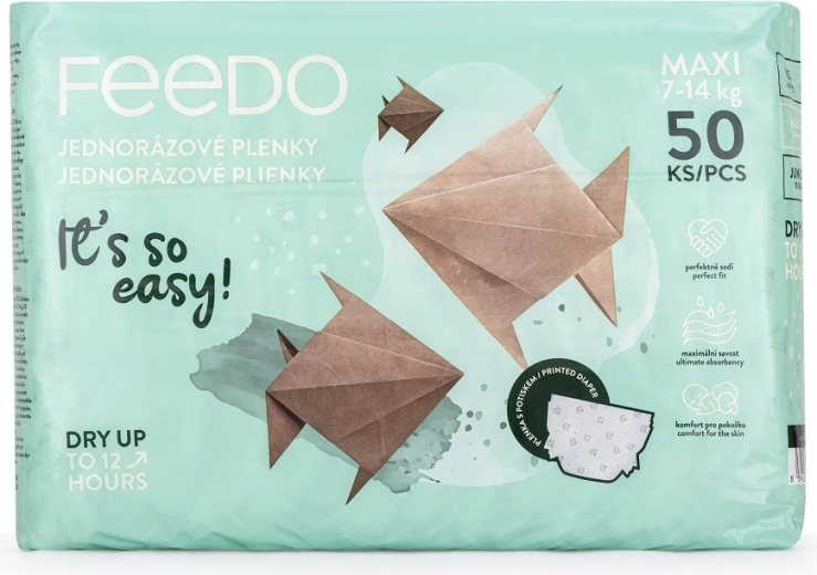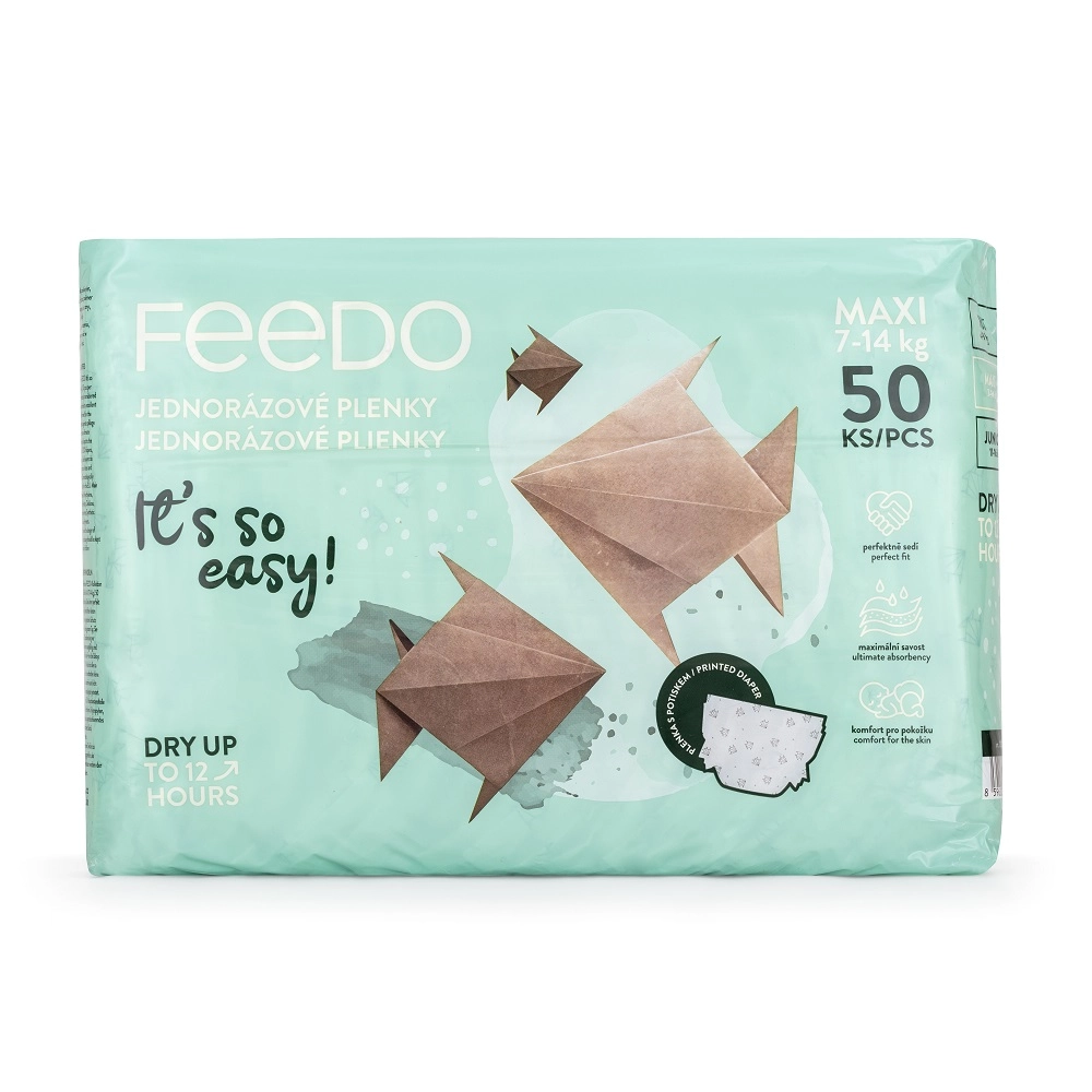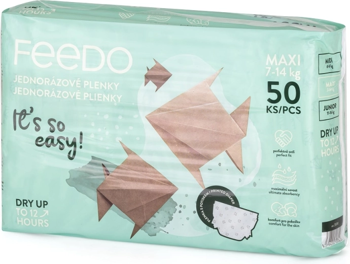 FEEDO wegwerpluiers Maxi combineren hoge absorptie, ademend vermogen en een veilige samenstelling zonder parfum en latex. De drielaagse kern voert vocht snel af en houdt de huid droog, terwijl de elastische beenmanchetten en de soepele taille zorgen voor een stevige maar comfortabele pasvorm zonder bewegingsbeperking.
