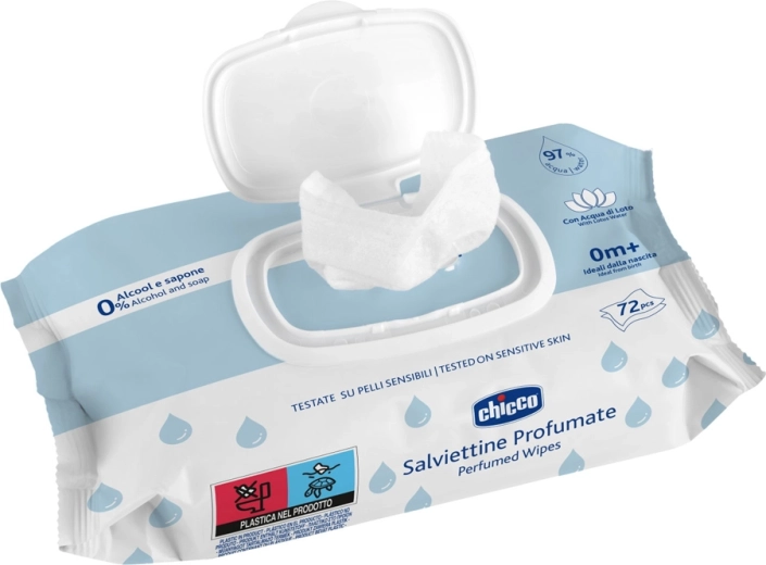 Zacht geparfumeerde babydoekjes van Chicco reinigen, verfrissen en hydrateren de gevoelige huid van baby’s en oudere kinderen op milde wijze. Dankzij 97% water en extract van de lotusbloem zijn ze ideaal bij het verschonen en voor het snel reinigen van handen en gezicht. Zonder alcohol en zeep, plasticvrij, dermatologisch getest op de gevoelige huid en geschikt vanaf de geboorte.
